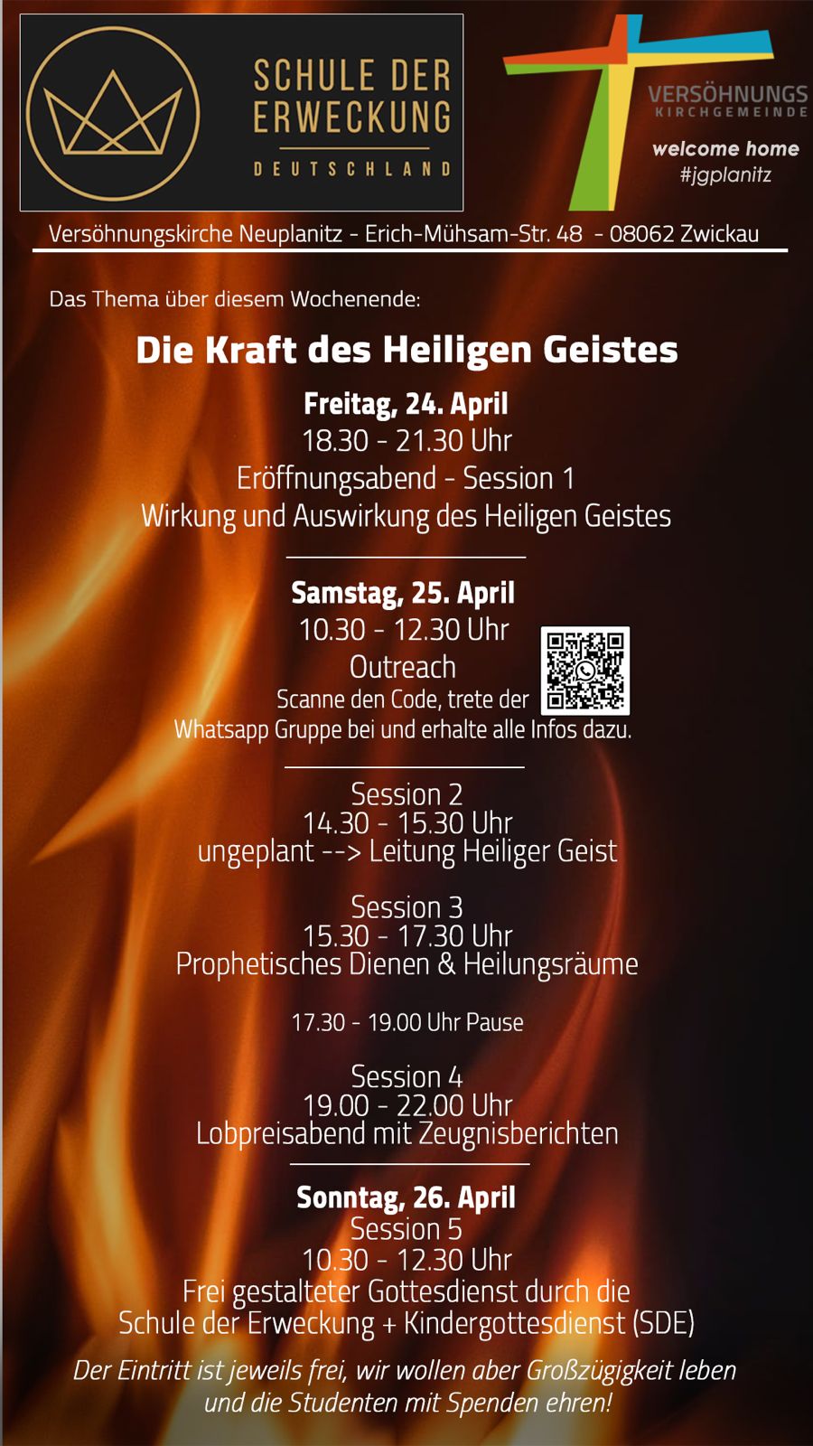 Vom 24.-26.04.2026 sind Studenten der Schule der Erweckung aus Füssen in unserer Gemeinde zu Gast. Verschiedene Angebote, wie Workshops, Zeit für Gespräche, Lobpreis... erwarten Dich! Möge es eine wertvolle Zeit für Dich und Dein Glaubensleben werden. Wir freuen uns auf Dich!